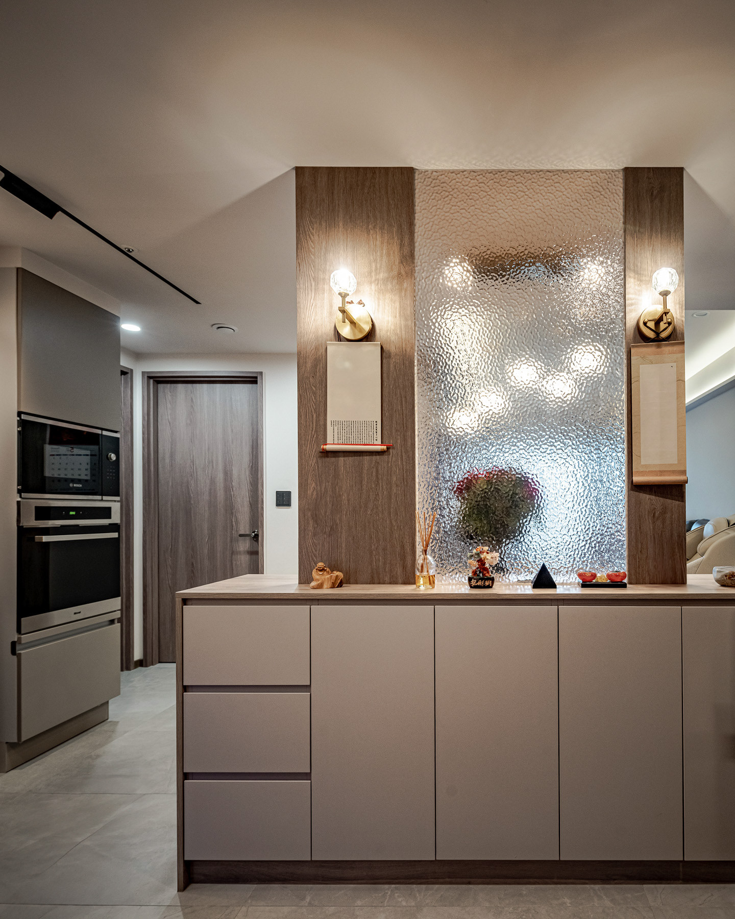 水波紋/長虹玻璃: 運用這些材質,讓光線在其中產生豐富的變化,既豐富了視覺層次,也巧妙地增添了空間的輕奢感。